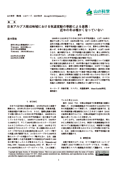 山の科学 Vol.5論説「Spatiotemporal variations of snow cover in Mt. Norikura, the Northern Japanese Alps」Motoshi Nishimura, Rui Tanaka, Akihiko Sasaki, Keisuke Suzuki